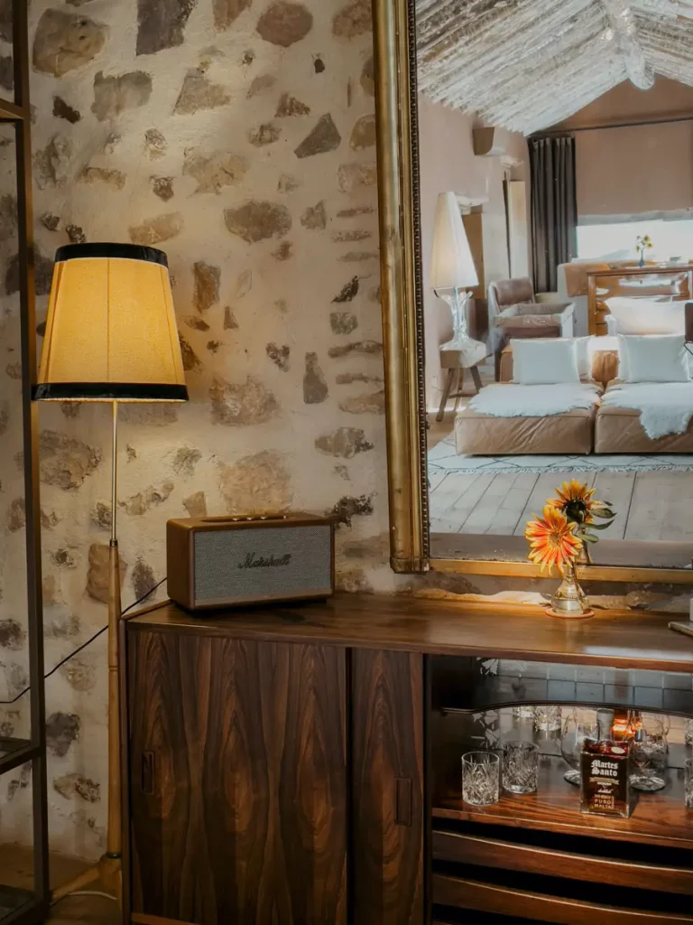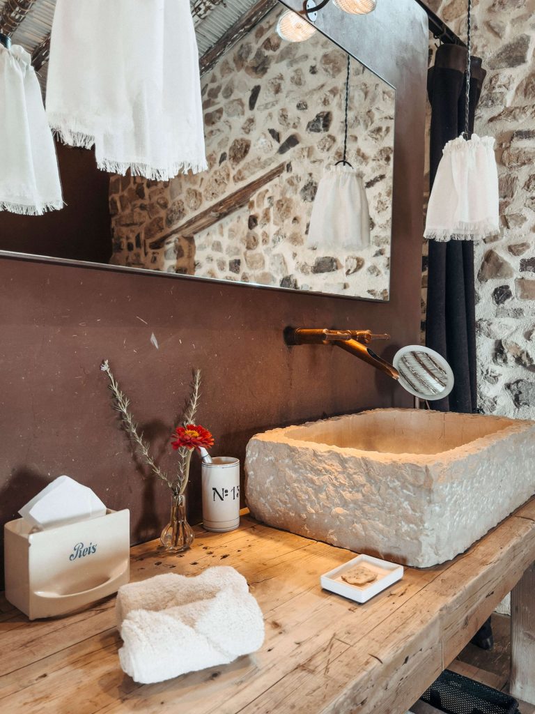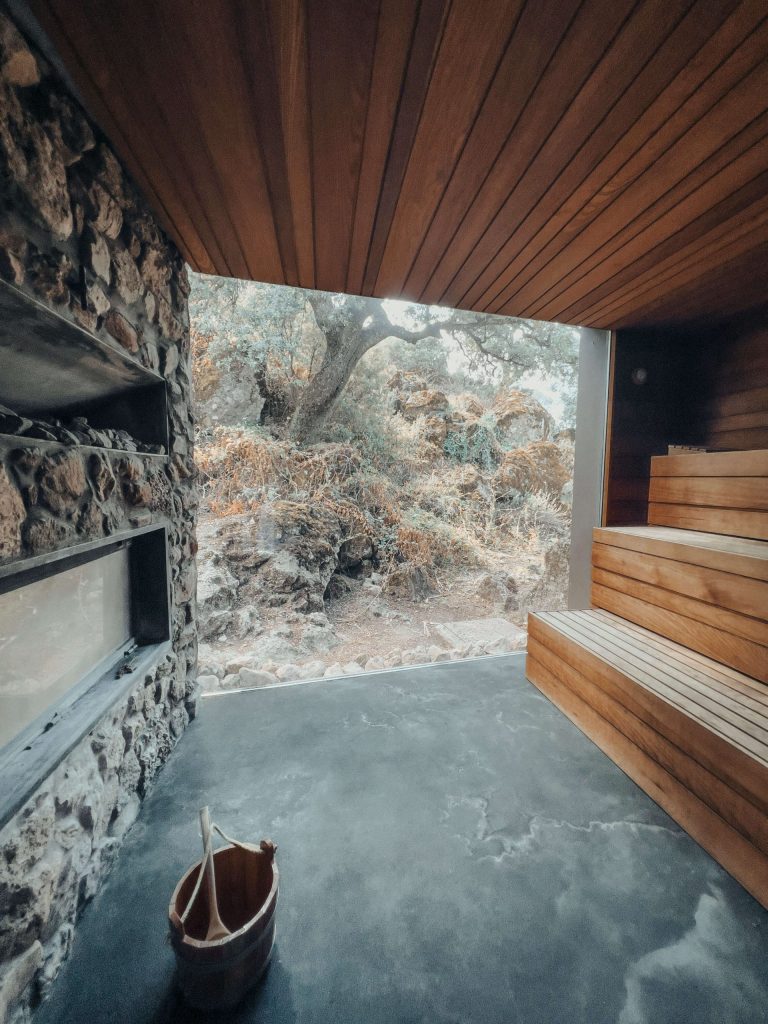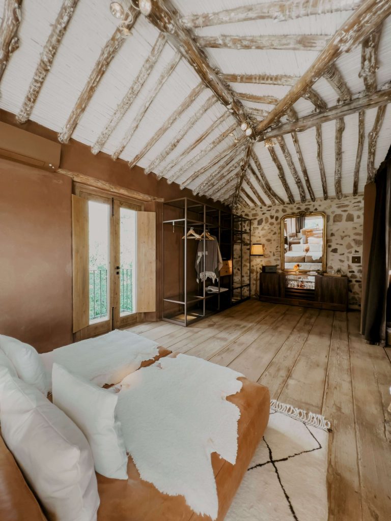 Wir werden von Ronald begrüßt. Während uns der österreichische Hoteldirektor das Konzept erklärend durchs Anwesen führt, stechen uns nicht nur die zur Herstellung der neun Zimmer verwendeten, natürlichen und lokalen Materialien ins Auge, sondern auch die Expertise traditionellen Handwerks gepaart mit einem Händchen zur gekonnten Symbiose mit dem Stand der Technik.