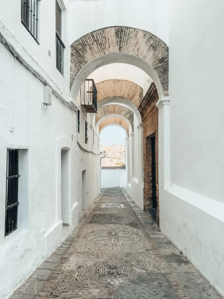 Beim allabendlichen Spaziergang durch die Gassen passieren wir Vejers beliebtesten Fotopunkt – eine Gasse mit vier Bögen, die den Blick auf die gegenüberliegende Neustadt malerisch einrahmen und an deren Ende das Restaurant La Juderia liegt.
