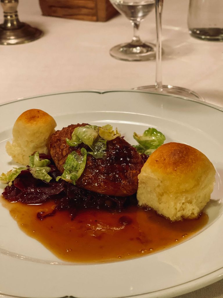 ✔ Gourmetreise Österreich: Dinner in der Zirbenstube mit Topfenknödel, Gansl, vegetarischen Klassikern & Weinen aus dem Kerzenlicht-Keller.