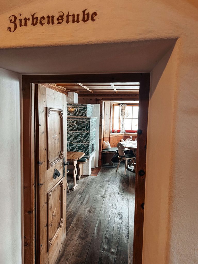 Das Knirschen des Schnees unter unseren Schuhen dämpft jedes Geräusch. Als wir beim großen Holztor ankommen, ist die Hektik vorangegangener Tage längst verflogen und wir tauchen in die wohlige Gemütlichkeit. Sofort spürt man, dass hier alte Traditionen nicht nur gepflegt, sondern auch gelebt werden. Ein offener Kamin im Eingangsbereich, Kachelöfen in den Stuben, Kerzenlicht und viel Holz, das ein Gefühl von Geborgenheit ausstrahlt. Und dazu herrlicher Duft, der aus der Küche weht.