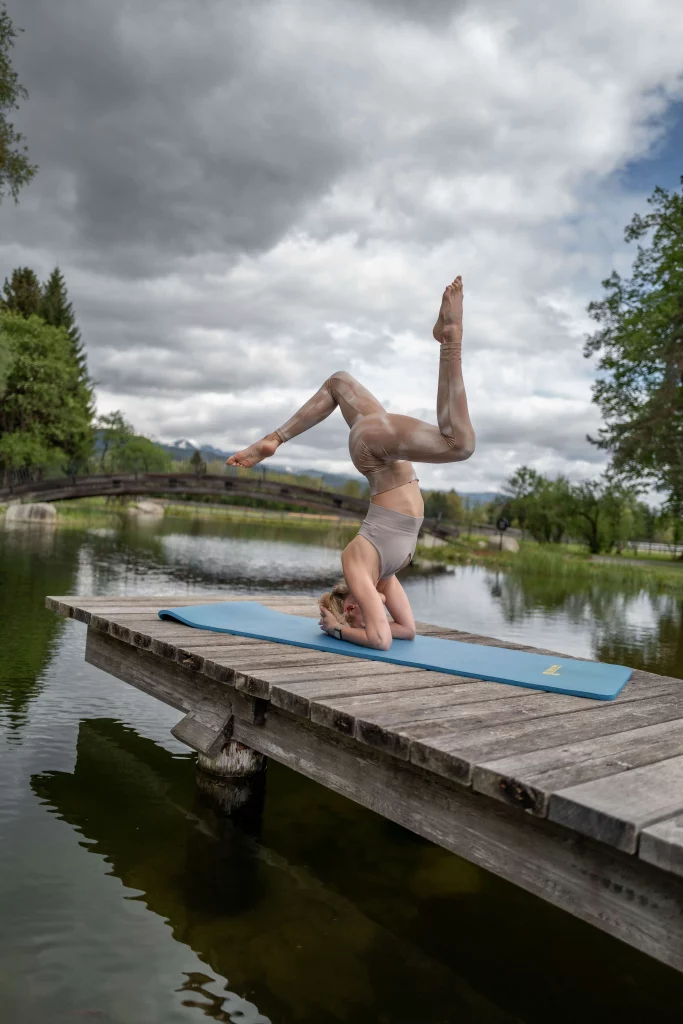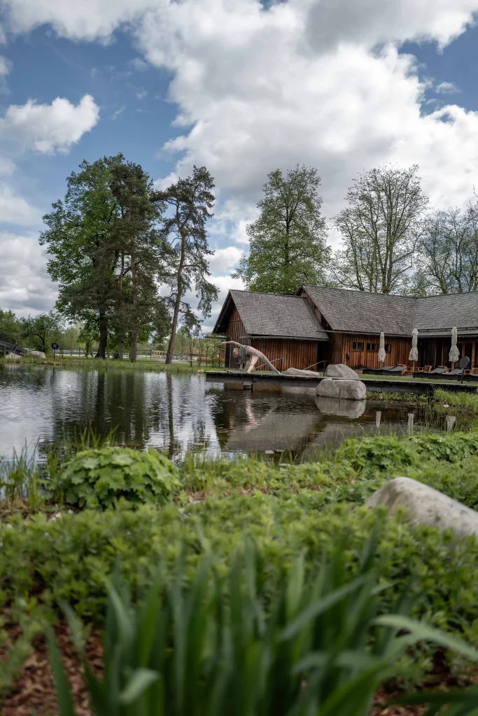 Am letzten Tag unseres Aufenthalts gönnten wir uns noch einmal eine Portion Bewegung im modernen Fitnessraum. Dort kamen wir ordentlich ins Schwitzen und nutzten die vielseitigen Trainingsgeräte und Gewichte. Natürlich durften unsere morgendlichen Schwimmrunden im Pool nicht fehlen, und für mich stand noch eine entspannende Yogaeinheit auf dem Programm. Wo könnte man besser zur Ruhe kommen und entspannen als am idyllischen Badeteich, umgeben von der Natur?