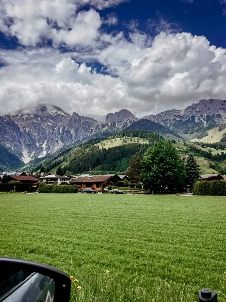 Wir reisen dieses Mal als Familie, mit unseren beiden Jungs, die schon gespannt hinten im Auto sitzen. Und auch unsere Vorfreude ist groß. Bereits die Anfahrt ist sehr idyllisch – es geht vorbei an saftig grünen Wiesen mit blühenden Frühlingsblumen, dahinter die schneebedeckten Berge. Auf den letzten Metern können wir schon erahnen, wie entspannend unsere drei Tage im Puradies werden. Zu unserer rechten Hand entdecken wir die imposanten Leoganger Steinberge, die bei jedem Wetter ihren Charme haben und Lust auf Wandern machen.