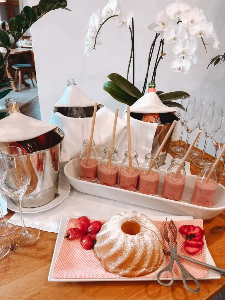 An der Rezeption werden wir freundlich empfangen und schon beginnt unser Urlaub mit einem kulinarischen Genuss, denn für uns geht es direkt zur Nachmittagsjause.