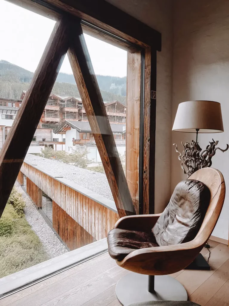 Die Kinder kuscheln sich im Kinderzimmer sofort ins Stockbett, welches für sie wie kleine Höhlen sind. Währenddessen bewundern wir von unseren vielen Fenstern im Zimmer die wunderbare Bergwelt um uns herum. Im Puradies scheint alles mit Gemütlichkeit verzaubert zu sein. Auch die urigen Chalets nebenan bieten besonders viel Privatsphäre und wecken ein heimeliges Gefühl.