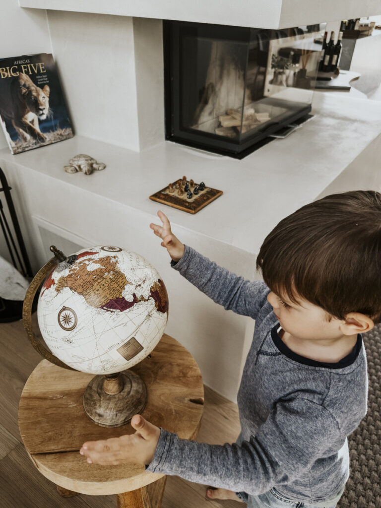Im stilvoll gestalteten Ferienhaus gibt es für kleine Entdecker viel zu erleben: Die Zebra-Bademäntel wurden sofort zum Lieblingsstück, die freistehende Badewanne war ein Abenteuer für sich, und das Tik Tak Toe-Spiel mit Wildtieren entfachte einen kleinen Wettbewerb unter Geschwistern. Ein riesiger Strohhut sorgt für Lachen beim Verkleiden, während der große Elefant im Wohnraum nicht nur als Dekoration dient, sondern zum Aussichtspunkt für kleine Weltenbummler wird. Besonders der Globus wurde zum Geschichtenerzähler – mit leuchtenden Augen verfolgten die Kinder, wo Mama und Papa schon überall waren und wohin das nächste Abenteuer führen könnte.