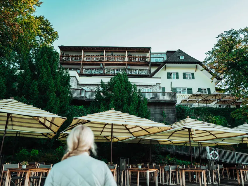 Zurück im Hotel belohnten wir uns mit Kaffee und Kuchen auf der sonnigen Terrasse an der Beachbar. Was könnte schöner sein, als warme Sonnenstrahlen auf der Haut zu spüren, einen saftigen Apfelstrudel auf dem Teller zu haben, den verführerischen Duft von frisch gebrühtem Kaffee in der Luft zu riechen und vor sich einen glitzernden See zu genießen? Es war wunderbar zu beobachten, wie die Boote am Ufer zum Mittagessen anlegten – wirklich purer Luxus.