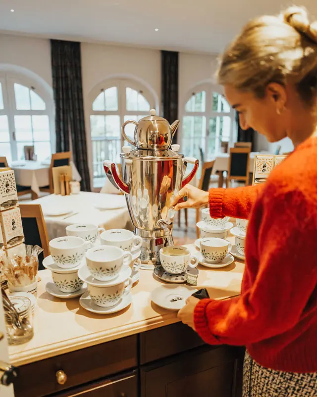 Der nächste Morgen schenkte uns noch einen letzten traumhaften Sonnenaufgang über dem See. Obwohl die Terrasse an diesem Morgen etwas zu kühl war, kann ich mir vorstellen, wie angenehm es hier im Sommer unter den Kastanienbäumen wäre, während man die Aussicht genießt. Nach einer ausgedehnten Spazierrunde nach St. Wolfgang machten wir uns schließlich auf den Heimweg, reich an neuen Erinnerungen und Erlebnissen. Das Landhaus zu Appesbach ist ein Ort zum Träumen, Verweilen und Genießen – perfekt für einen romantischen Urlaub, eine Hochzeit oder einfach zum Krafttanken.