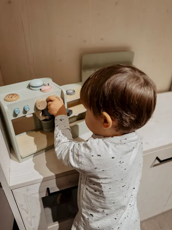 Ein Kinderspielplatz und ein Trampolin locken unsere Kids gleich hinaus in den Garten. Auch Indoor gibt es für die bewegungshungrigen Kleinen einen Spielraum zum Turnen und Herumtoben. Auf einer gut abgesicherten Bolder Wand können angehende kleine Bergsteiger schon mal für die spätere Hochkönigbesteigung üben. Den Kindern gefällt all der Freiraum und die vielen Möglichkeiten hier im „Studio 963“.