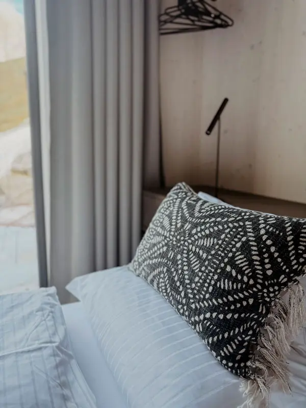 Vier Etagen hat das großzügig gestaltete Haus und ist für 12 Gäste ausgelegt. Im ersten Stock bieten uns fünf geräumige Doppelzimmer, alle mit eigenem Bad, getrenntem WC und viel Platz. In zwei Zimmern gibt es Zustellbetten. Wir machen es uns in einem davon gemütlich. Julia, unsere Gastgeberin, hat uns für unseren Kleinen ein liebevoll gestaltetes Babybettchen hineingestellt. Eines der Zimmer hat sogar eine freistehende Badewanne. In drei der Schlafräume fällt der Blick aus dem Fenster direkt auf ein kleines Kirchlein am Hügel gegenüber. Im anderen Zimmer sieht man auf den Skihang bzw. den Bauernhof mit seinem alten Stadl und den Bienenstöcken. Eines der Zimmer hat keinen Ausblick ins Grüne, besticht aber dafür mit seinem Nestcharakter und gemütlichen Boho Flair.