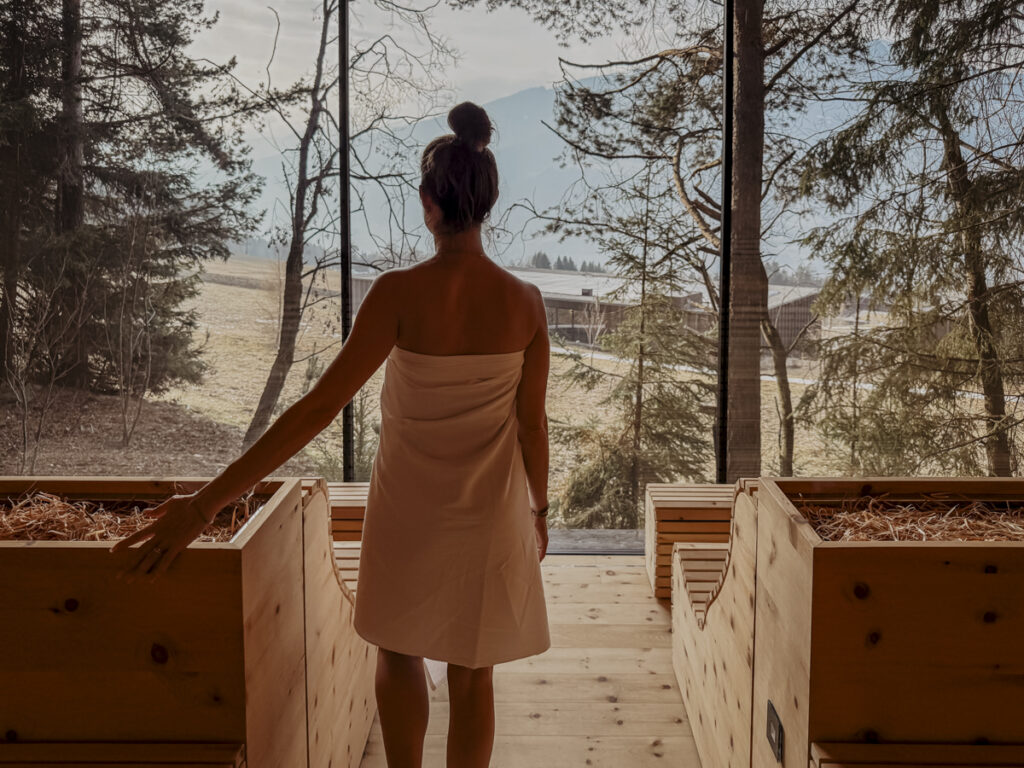 In der Familiensauna, mit ihrem dampfenden Bad, dem täglichen Scrub und der Heu-Biosauna, erleben auch die Kleinsten ihr eigenes Wellness-Ritual – abgerundet durch eine charmante Schneedusche auf dem Balkon, die an alles gedacht hat.