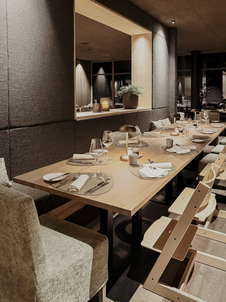 Die kulinarischen Genüsse runden das Erlebnis ab: Ein üppiges Frühstücksbuffet, das mit frischen Früchten, mediterranen Spezialitäten, Südtiroler Wurst und Speck, vielfältigen Ei-Gerichten, Pancakes, Waffeln und süßen Verführungen in den Tag startet – begleitet von frisch gepressten Säften und erlesenen Kaffeesorten. Mittags erwartet ein Buffet, das mit Monoportionen, einer farbenfrohen Salatbar und speziell abgestimmten Kindergerichten überzeugt. Abends verzaubern Antipasti, feine Vorspeisen, wärmende Suppen und exquisite Hauptspeisen – wahlweise auch vegetarisch – den Gaumen, während Desserts mit Eis, Streuseln und einem funkelnden Schokobrunnen vor allem die kleinen Gäste in Verzückung versetzen.