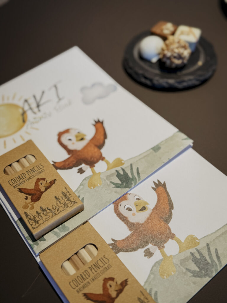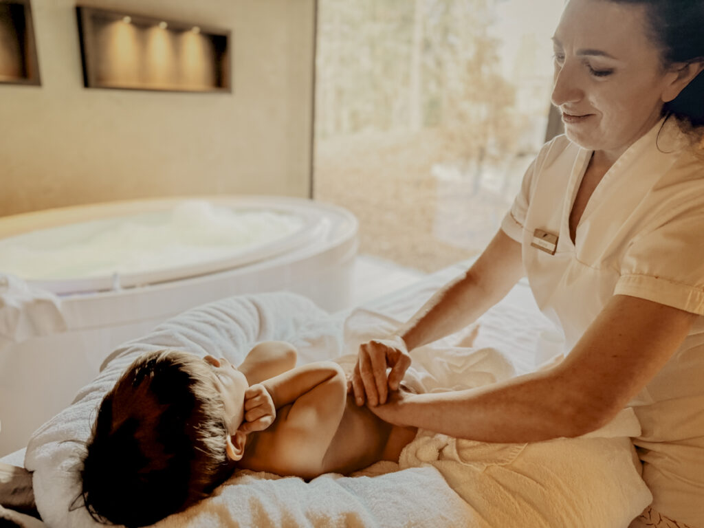 Ein ganz besonderes Highlight war unser Eltern-Kind-Treatment – ein liebevoll gestalteter Wohlfühlmoment, den ich gemeinsam mit unserem Kleinen erleben durfte. Zuerst ein warmes Schaumbad mit sanften Lichteffekten in der Badewanne, während durch die große Fensterfront der Blick in den ruhigen, angrenzenden Wald fiel. Anfangs noch etwas skeptisch, entspannte sich unser Sohn mit jeder Minute mehr – und suchte dabei neugierig Ausschau nach AKI, dem Adler, zwischen den Bäumen. Bei seiner allerersten Massage mit den zart duftenden Ölen der hauseigenen Pflegelinie fiel schließlich die letzte Spannung von ihm ab – die Augen wurden schwer, die Bewegungen langsamer… ein Moment der puren Geborgenheit.