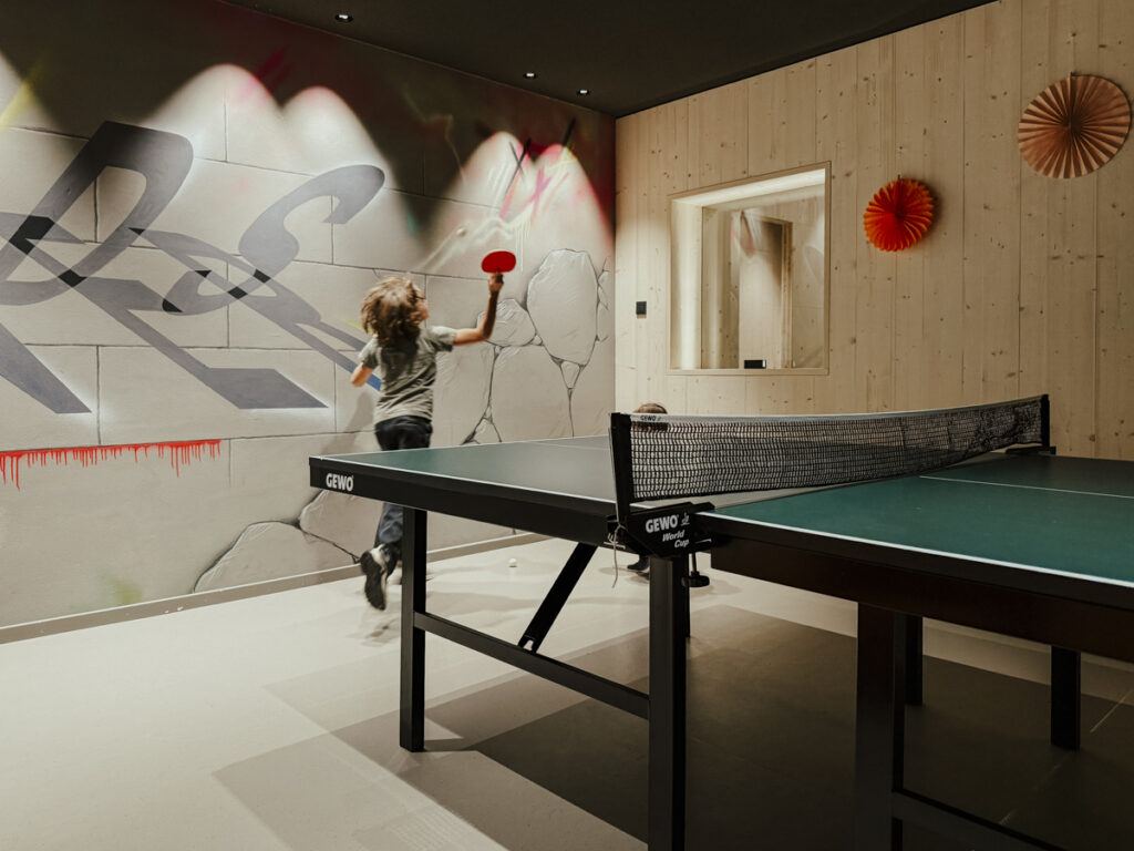 Bereits beim Einchecken in der Lobby beginnt das Abenteuer: Während die Kinder in der Spielscheune toben, das liebevoll gestaltete Holz-Kletterhaus mit einer kleinen Rutsche erkunden und sich entlang der großen Rutsche in den unteren Stock schlängeln, genießen wir Erwachsene einen gemütlichen Cappuccino mit atemberaubendem Blick ins Brixner Tal und zur, vor Freude quietschenden, Rasselbande – in freudiger Erwartung, die Kinder bald wieder in den Arm schließen und das weitere Angebot gemeinsam mit ihnen erleben zu dürfen.