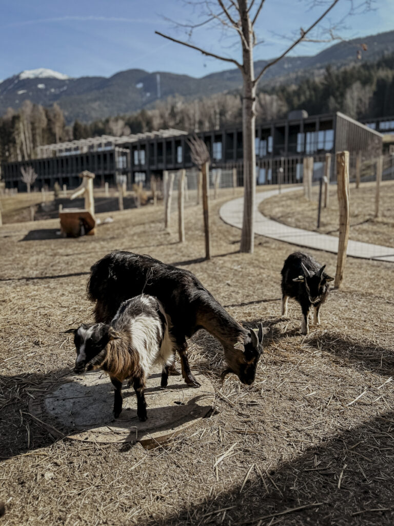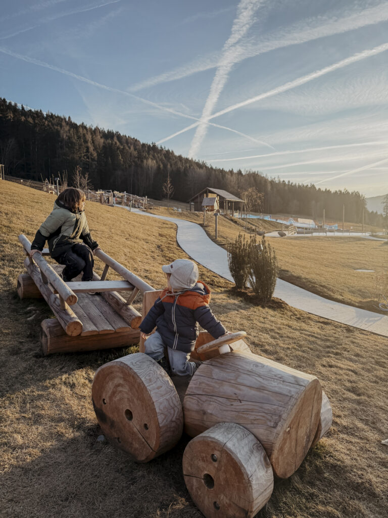 Wenn der Abend in ein warmes, goldenes Licht getaucht wird und die letzten Sonnenstrahlen das Brixner Tal verzaubern, spürt man die Magie dieses Ortes – ein Ort, an dem jede Berührung, jeder Klang und jeder Augenblick zu einem unvergesslichen Erlebnis wird. In diesen Stunden, wenn Kinderlachen und leise Gespräche die Luft erfüllen und die Natur ihre ganze Poesie entfaltet, verschmelzen Abenteuer, Erholung und pure Lebensfreude zu einer Symphonie der Sinne. Vor der Abfahrt genießen wir die Sonnenuntergangsstimmung und schnappen nochmal frische Luft auf dem wunderschön angelegten Spielplatz und im Streichelzoo.