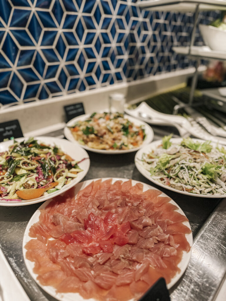 Auch mittags und abends ist die Auswahl sensationell: Es gibt feine Grillereien, eine Wok-Station, eine Pizza- und Pastaecke, bunte Salate und leckere Nachspeisen. Von asiatisch über karibisch bis zu international reicht das Angebot.