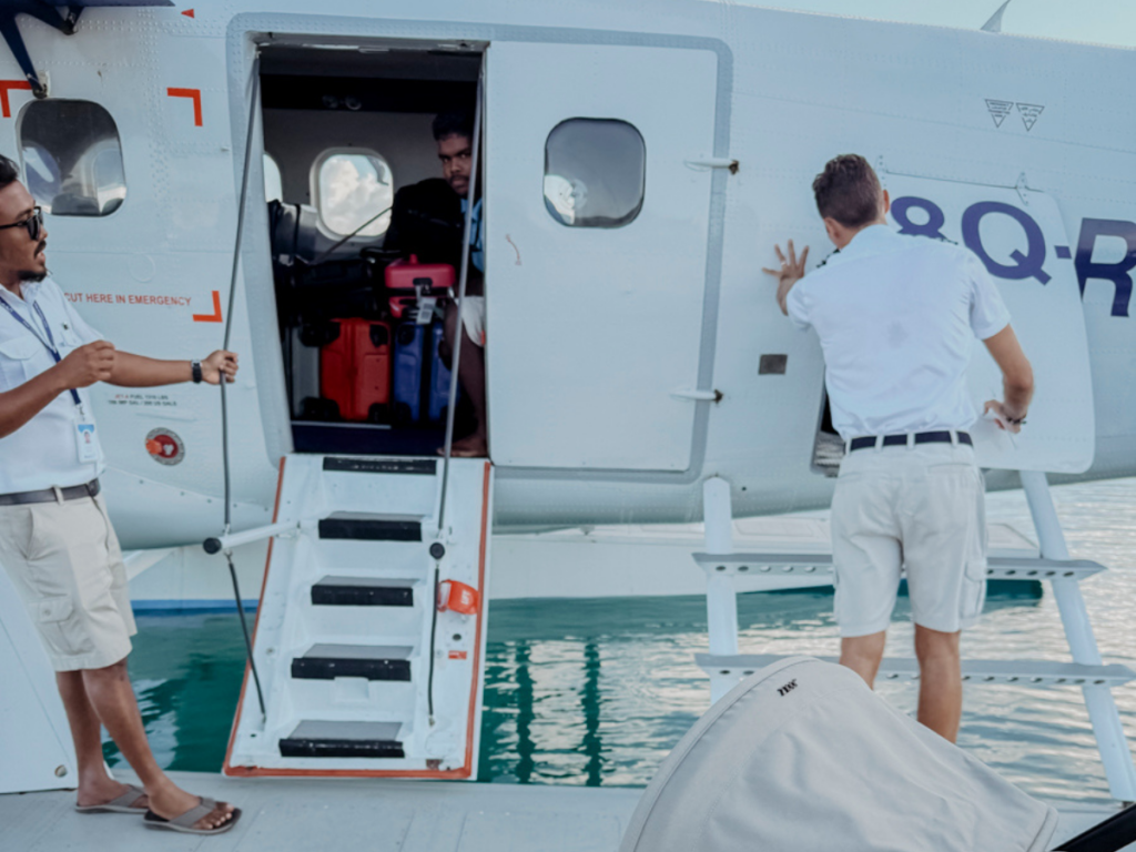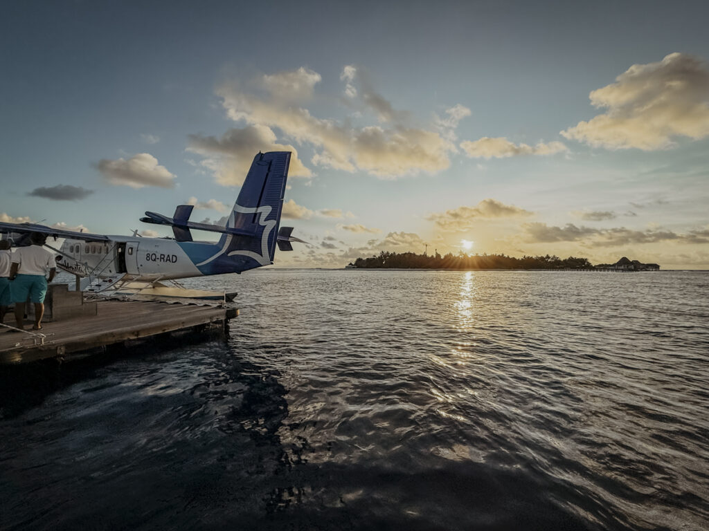 Nach unserer Landung am internationalen Flughafen Velana auf der Hauptinsel Malé, wartet schon ein freundliches Team auf uns und begleitet uns zum Seaplane-Terminal. 25 Minuten dauert der Tiefflug mit einem Wasserflugzeug. Der Indische Ozean funkelt in verschiedenen Blautönen und färbt sich in den flachen Lagunen rund um die zahlreichen Inseln türkisblau. Was für ein schönes erstes Abenteuer! „Touch down“ ist auf einem kleinen Floß draußen vor Nova, „unserer“ Insel. Ein Boot bringt uns zu einem Steg. Der führt uns schnurstracks ins Paradies.