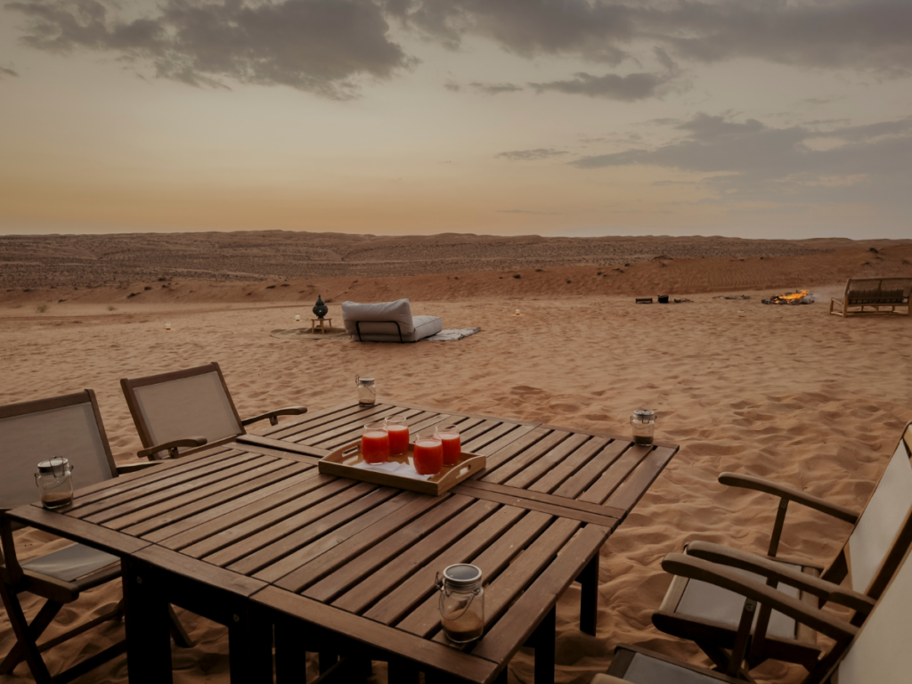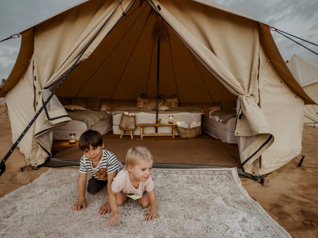 Der nächste Abschnitt unserer Reise ist einer, der lange nachwirkt – sowohl emotional als auch atmosphärisch: Die Wahiba-Wüste. Und hier erwartet uns etwas ganz Besonderes: das Canvas Club Desert Camp . Anders als klassische Camps, in denen mehrere Gästegruppen in direkter Nachbarschaft zelten, wird hier jedes Camp ausschließlich für eine Familie oder Gruppe individuell aufgebaut – mitten in den Dünen, unter freiem Himmel, mit eigenem Zelt, privatem Badezimmerzelt, und sogar einem Wohnzimmerzelt mit persönlichem Koch. Exklusiver geht es kaum. Als wir bei Sonnenuntergang ankommen, steht unser Zelt schon bereit, Kerzen leuchten im Sand, das Abendessen duftet. Unsere Kinder rennen barfuß durch die Dünen, während wir auf orientalischen Teppichen Tee trinken. Später sitzen wir am Lagerfeuer, um uns herum nichts als Stille und Sterne – so viele, wie ich sie mein Leben lang nicht gesehen habe. Unser Sohn entdeckte den Orion und war fasziniert vom Gürtel der drei Sterne, während unsere Tochter mit glänzenden Augen auf dem Schoß einschlief – eingewickelt in eine Decke, den Blick zuletzt auf die Milchstraße gerichtet. Dieses Gefühl von Weite, von Freiheit, von Verbundenheit – es ist schwer in Worte zu fassen. Der Canvas Club hat uns eine Erfahrung geschenkt, die weit über Luxus hinausgeht: Es war Magie.