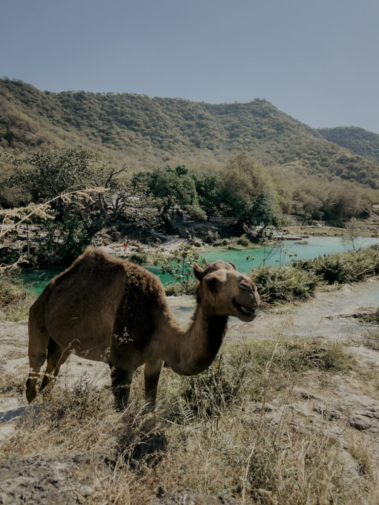Nach diesem Traum tauchen wir wieder in die Natur des Omans ein. Wir übernachten im kleinen Nomad Inn, das schlicht, aber charmant ist – perfekt gelegen, um die Wadis zu erkunden. Besonders sehenswert: das Wadi Shab mit seinen smaragdgrünen Wasserbecken. Tipp für Familien: Man sollte unbedingt das erste Boot um 08:30 Uhr nehmen – danach wird es schnell voll. Da unser Hotel erst ab acht Frühstück servierte, waren wir leider etwas zu spät dran. Trotzdem war der Spaziergang durch das Tal mit den Kindern wunderschön und unsere kleine Tochter war sogar mutig genug mit mir gemeinsam in die Höhle zu schwimmen, die am Ende des Tals liegt.