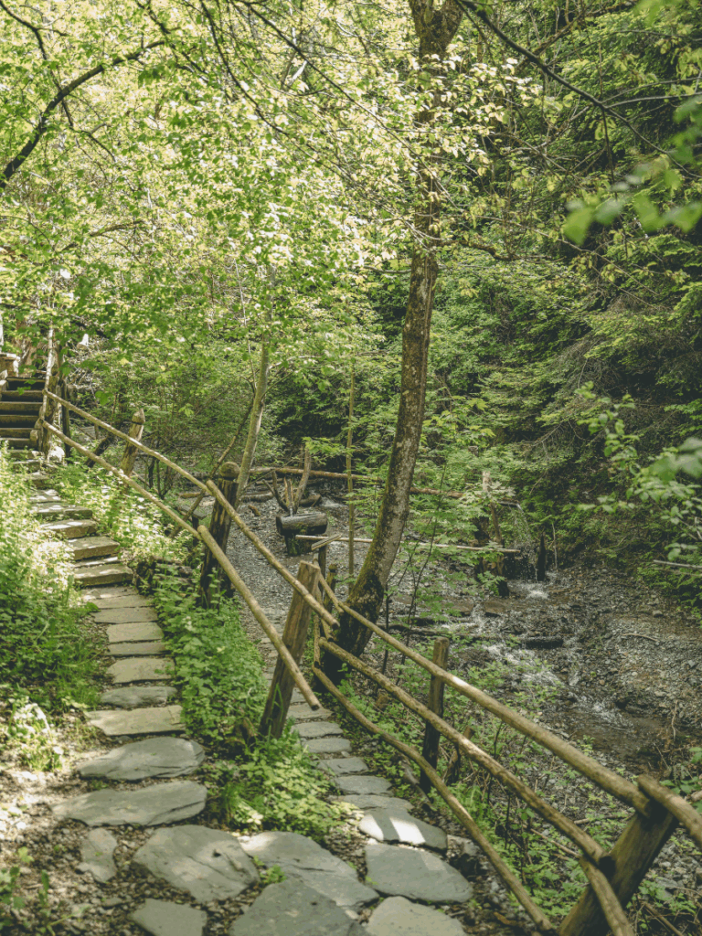 ✔️ Waldsauna & Gebirgsbach: Entschleunigung pur – schwitzen im Grünen, kneippen im eiskalten Naturwasser direkt neben der Sauna.