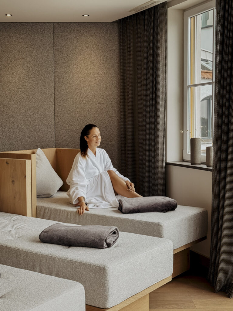 Nach einem aktiven Tag in den Bergen oder einem schweißtreibenden Workout bietet das Panorama Spa im Hotel Alpina den idealen Rahmen für Erholung. Herzstück ist der Infinitypool, der sich am Rooftop samt Dachterrasse befindet und einen beeindruckenden Ausblick auf die Alpen ermöglicht. Ergänzt wird das Angebot durch eine moderne, frisch renovierte Saunalandschaft, stilvoll gestaltete Ruheräume mit Panoramablick sowie ein vielfältiges Treatment-Angebot im asiatisch angehauchten SPA. Der Wellnessbereich angelegt auf mehreren Ebenen ist ein durchdachter Rückzugsort, der sowohl für Familien als auch Ruhesuchende genug Freiraum bietet.