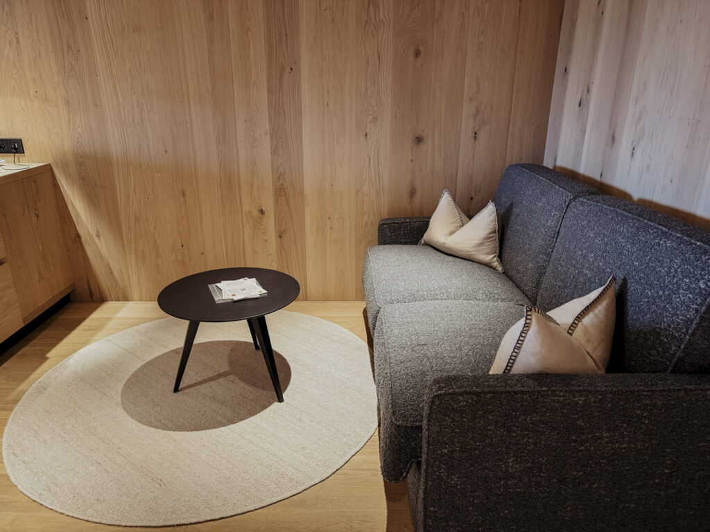 Das Zimmer selbst ist durchdacht gestaltet: eine gemütliche Couchecke lädt zum Lesen oder Relaxen ein, dazu ein kleiner Barbereich mit Kaffeemaschine – perfekt für meine morgendliche Espresso-Routine. Für Familien praktisch: Die Couch lässt sich zu einem zweiten Doppelbett umfunktionieren. Auch clever gelöst: WC und Bad sind getrennt. Und dank vieler Schränke und Kommoden gibt es richtig viel Stauraum.