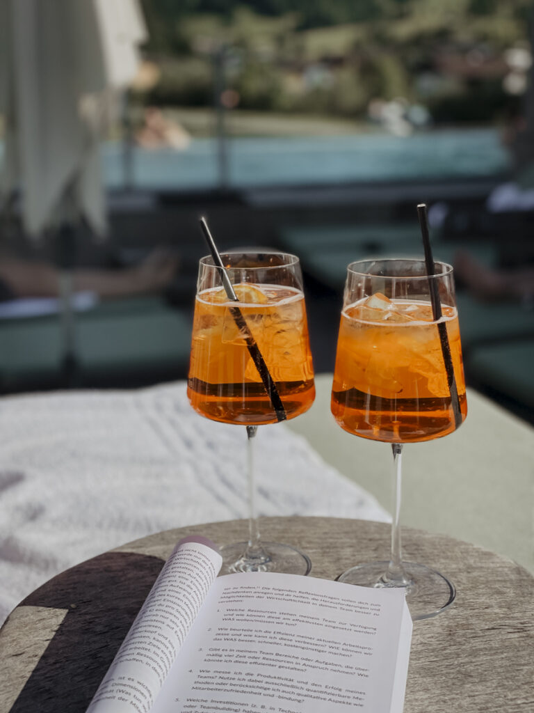 Wieder zurück im Hotel geht’s ab unter die Dusche – und dann direkt wieder nach oben in den Rooftop-Spa, ein kleiner und feiner Rückzugsort, den wir so lieben gelernt haben. Es ist ruhig, stilvoll, offen – mit Panoramasauna, Pool mit Aussicht, Relax-Zonen, Glasfronten und weichen Decken. Wir lesen, blättern durch Magazine, lachen, dösen, naschen nochmal ein Eis, lassen die Seele baumeln.