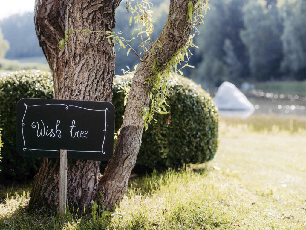 Noch was Schönes! Unten am Ufer des Natursees, steht der Seehof Wish Tree. Kein gewöhnlicher Baum, sondern ein stiller Begleiter für Gedanken, Träume und kleine Hoffnungen. Wer möchte, schreibt seinen Wunsch auf ein Blatt Papier, „stopft“ ihn in ein kleines Glasfläschchen – beides an der Rezeption erhältlich – und bindet ihn an einen Ast. Welch hübscher Gedanke, dem wir gerne folgen.