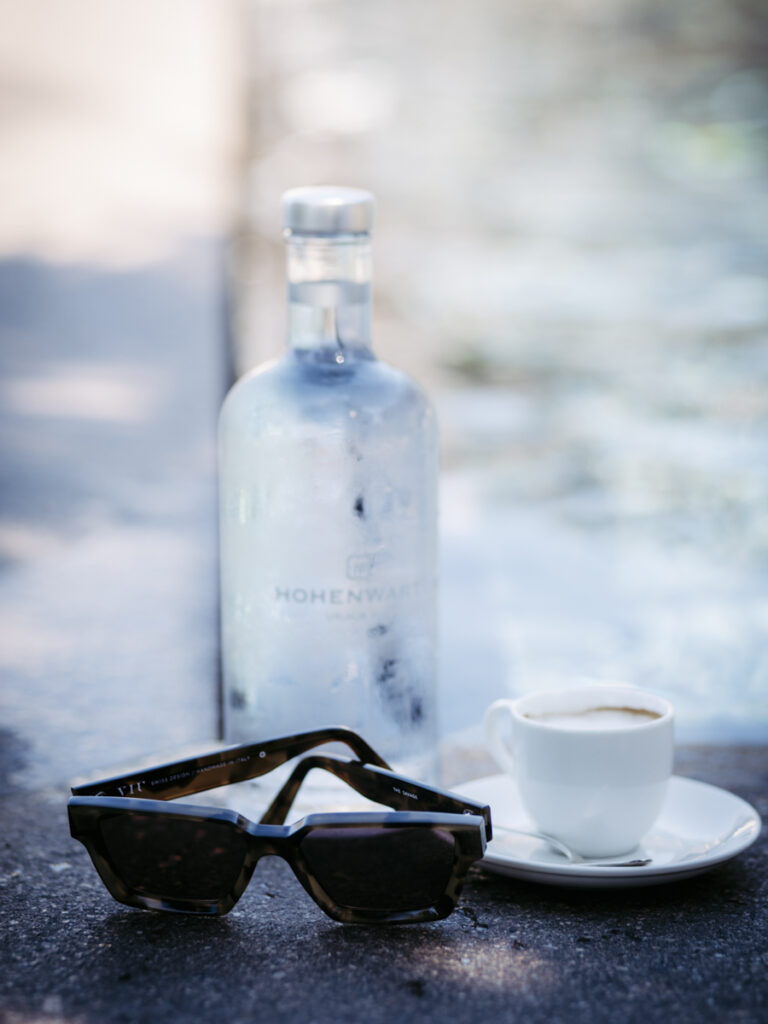 Entspannen kann man gut im weitläufigen Hohenwart-Garten. Idyllisch ist er mit Palmen, Rosen und Lavendel, soweit das Auge reicht. Ein 25 m langer Outdoor-Sportpool, ganzjährig beheizt auf angenehme 28 °C –, lädt zum Bahnenziehen oder einfach zum Treibenlassen – wie wir es tun – ein. Wer über den Beckenrand hinaussieht, blickt weit ins Etschtal, über Meran bis ins Vinschgau. Liegeplätze und versteckte Lounge-Ecken laden zum Sonnen- oder Schattenbaden ein. Für aktive Gäste gibt es einen eigenen Calisthenics-Park, und eine Boccia-Bahn. Wir chillen und freuen uns über einen kühlen Drink, den uns Peter galant serviert.