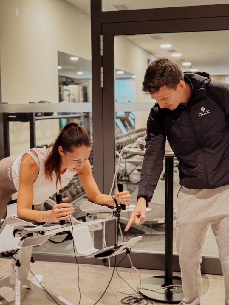 Besonders gut hat uns das Gruppentraining „Die 12 Tiroler“ gefallen. Skisprunglegende Toni Innauer hat die 5 Tibeter quasi ans Tirolerische adaptiert und Trainer Stefan hat uns mit Übungen wie dem Steinadler, dem Schwan oder dem Rothirsch ordentlich ins Schwitzen gebracht.