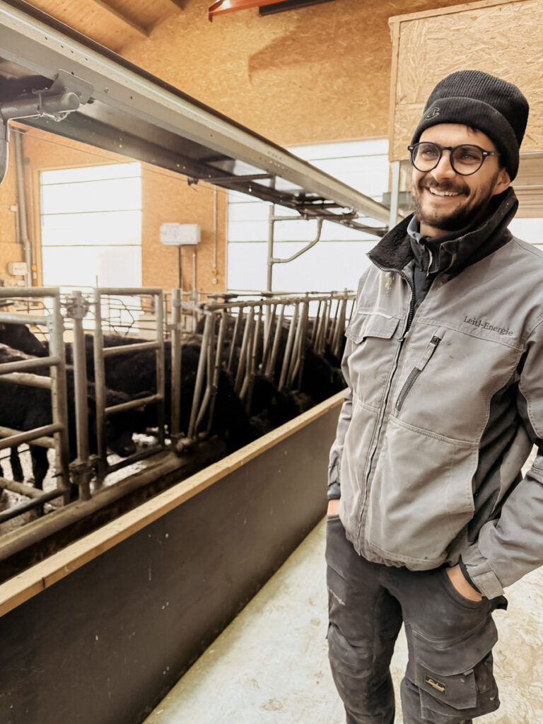 Stephan, unser Gastgeber, ist ein Tausendsassa mit visionärem Blick und bäuerlichen Wurzeln. „Meine Frau schimpft mich immer, wenn ich mich als Bauer vorstelle“, erzählt er. Die Landwirtschaft ist für ihn kein Beiwerk zum Leitlhof, sondern der Kern seiner Haltung. „Wollt ihr meinen Stall sehen?“, fragt er. Wir wollen! Im nahegelegenen „Mühlhof“ führen rund 35 Angusrinder ein glückliches Leben, bis sie in der Hotelküche wertschätzend verarbeitet werden. Die jungen Rinder wachsen in Muttertierhaltung auf und verbringen den Sommer auf Almwiesen. Am Mühlhof wird auch Gemüse für die Hotelküche angebaut.
