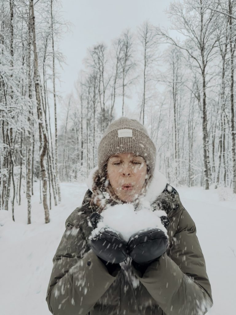 Zwischen den großen Erlebnissen nehmen wir uns immer wieder Zeit für stillere Momente. Gemütliche Lesestunden im Iglu mit einem Becher Kaffee von der Rezeption, ein Aufguss in der finnischen Sauna und Schneeschuhwanderungen in der umliegenden Winterlandschaft. Es geht nicht darum, möglichst viel zu unternehmen, sondern um Zeit draußen zu verbringen. Wir besuchen auch die beiden Rentiere Frosty und Snowflake, welche direkt im Camp leben und dürfen sie sogar füttern – wie entschleunigend.
