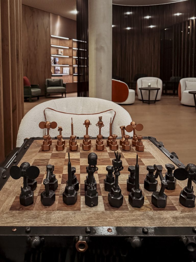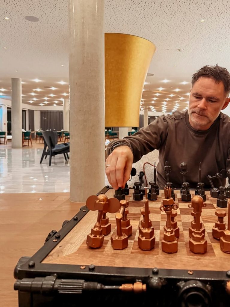 Überraschenderweise, während wir am Abend des ersten Tages vor dem Spa quasi fast im Stehen eingeschlafen sind, hatten wir am zweiten Abend überraschend viel Energie. Kein Crash, gute Laune, noch ein Abstecher in den Spa und – eine kleine Besonderheit des Hauses – eine Runde Schach.