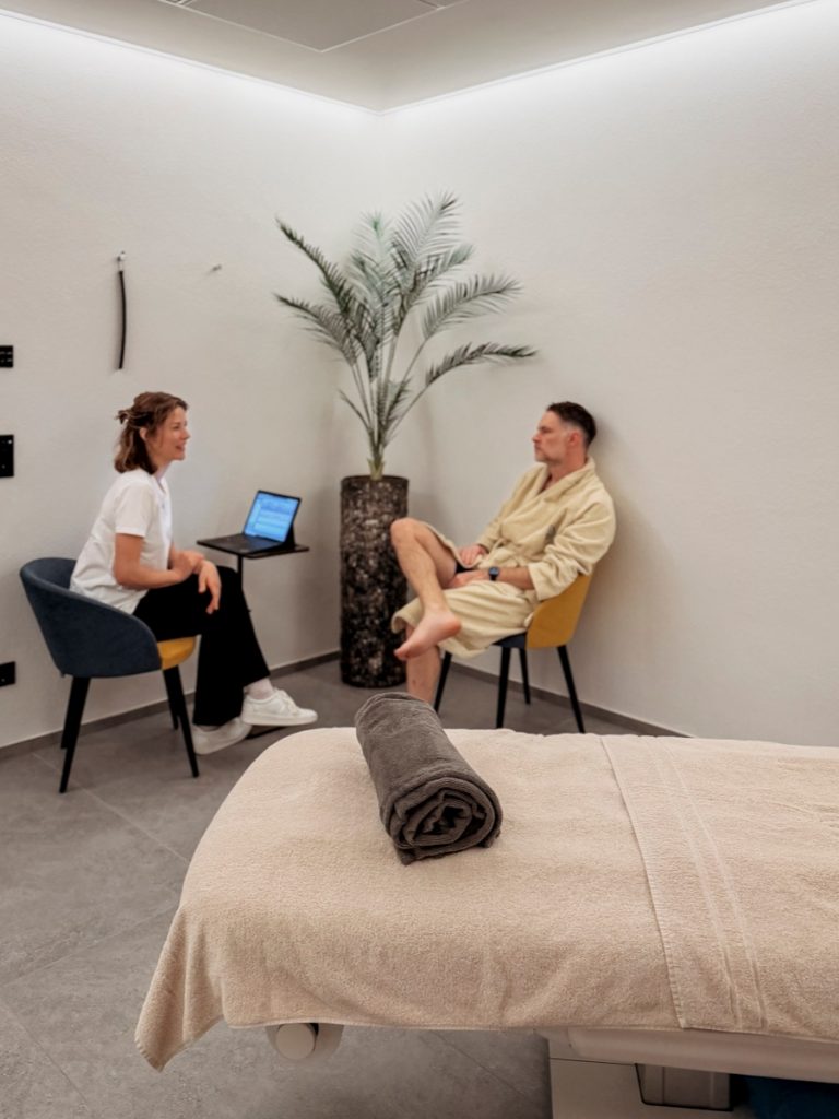 Der erste Programmtag startete direkt nach dem Frühstück mit dem Aufnahmegespräch, der Blutabnahme und einer ausführlichen Anamnese. Was uns sofort aufgefallen ist: jeder Mitarbeiter – von der Rezeption bis zum Arzt – mit echter Freude bei der Sache, geduldig, zugewandt, nie gehetzt. Das ist keine Phrase, das haben wir buchstäblich an jedem Tag gespürt.
