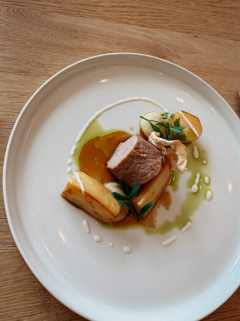 Mittag und Abend brachten jeweils eine Suppe – warm gehalten durch eine eingebaute Kerzen-Wärmefunktion – und ein Hauptgericht. Mit Fleisch, Fisch oder vegan, je nach Präferenz. Kleine Kunstwerke, jedes einzelne. Und keine Mikrowelle in der Küche – das hat uns Buff selbst erklärt, mit einem leichten Schmunzeln: „Gehen Sie, wo Sie wollen, in jede Küche. Sie werden eine Mikrowelle finden. Bei uns nicht.“