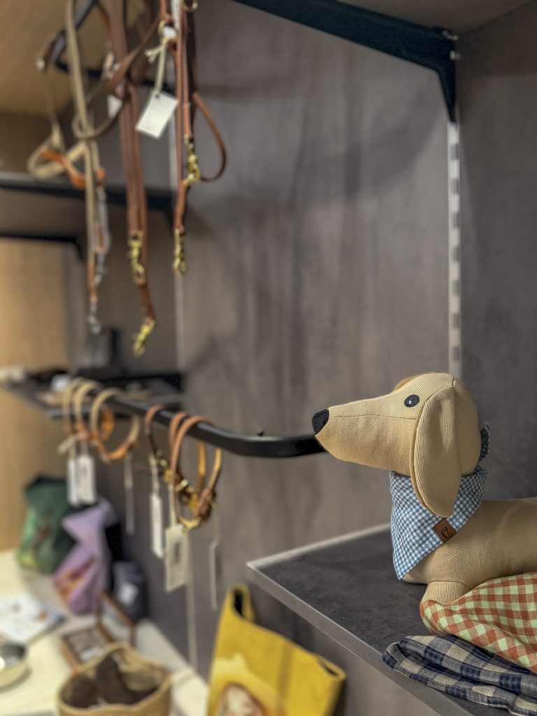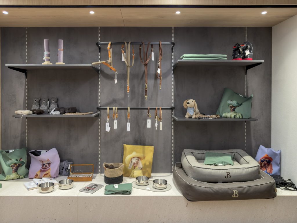 Ich werfe noch einen Blick in die hauseigene Hundeboutique. Liebevoll arrangiert findet sich hier alles, was Hunde und ihre Menschen sowohl im Alltag als auch im Urlaub glücklich macht: kuschelige Betten für den Liebling, modische Halsbänder, Spielzeug, Wander- und Reiseequipment sowie Taschen mit charaktervollen Vierbeiner-Prints. Am meisten begeistern Qalisha – wenig überraschend – die gut gefüllten Futterdosen.