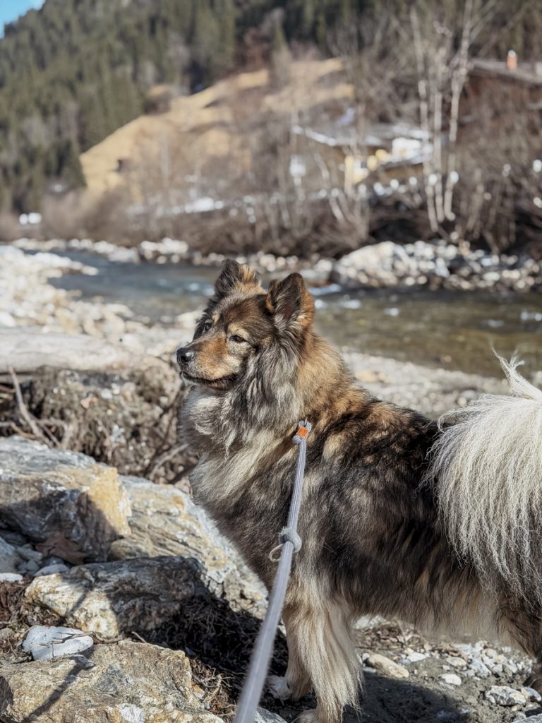 Das milde Frühlingswetter zieht uns sofort auf die Hotelterrasse. „Leine los“ heißt es für Qalisha – die eingezäunte Hundewiese mit ansehnlicher Dogtoilet direkt beim Haus ist ideal für ihre erste Herumtollerei. Gleich unterm Hotel fließt die Großarler Ache und lädt zu einem ersten Rundgang entlang ihres naturbelassenen Flussbettes ein. Das Wasser ist zur Schneeschmelze noch zu kalt – aber im Sommer sehe ich Qalisha hier schon planschend vor mir.