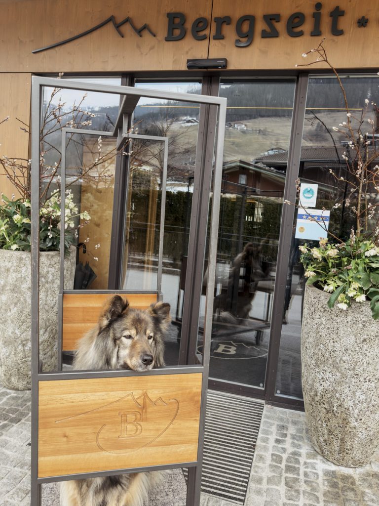 Und dann ist da noch Gloria, die ältere Tochter. Sie war es, die die entscheidende Idee hatte: das Familienhotel der Eltern in ein spezialisiertes Hundehotel umzuwandeln. Nach drei Monaten Umbauzeit öffnete das Bergzeit im Sommer des Vorjahres neu. Und der Unterschied zu einem bloß „hundefreundlichen“ Hotel ist spürbar. Es wurde konsequent aus der Perspektive von Vierbeinern und ihren Besitzern gedacht – um beiden gerecht zu werden. Die Fellnasen sind nicht bloß geduldet – sie bilden das Zentrum der Aufmerksamkeit.