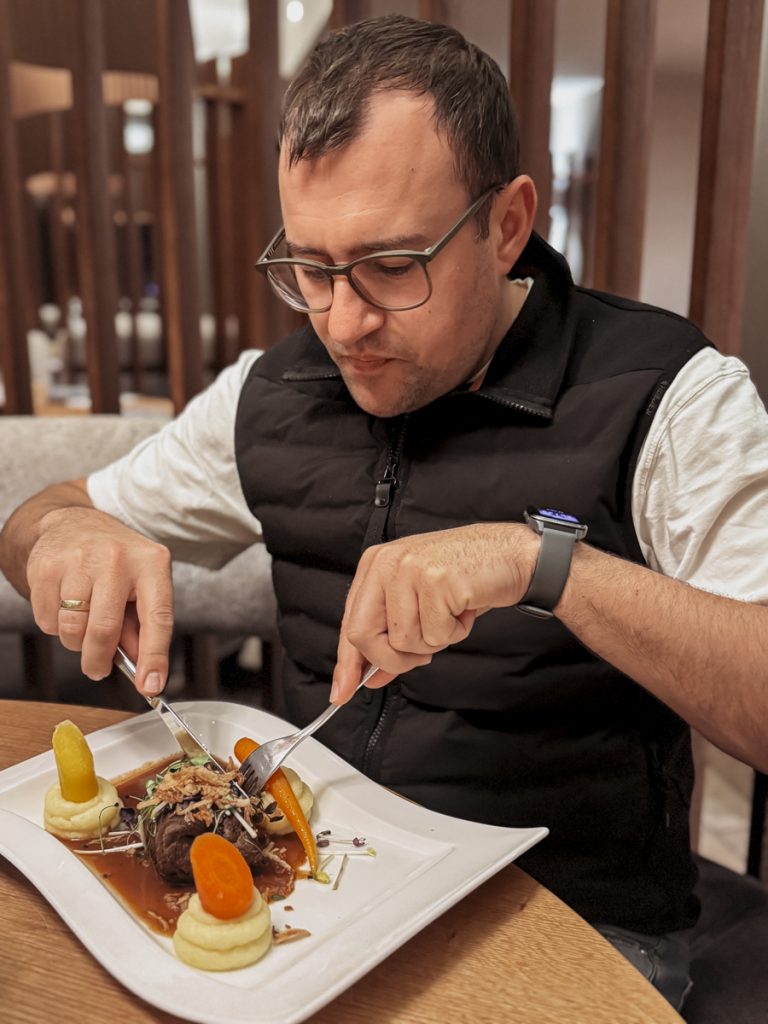 Was mich überrascht: eine konsequente Haltung gegen Lebensmittelverschwendung. An den Getränkestationen gibt es ausschließlich Vierteliterbecher – damit nicht halbvolle Gläser stehen bleiben und entsorgt werden müssen. Eine kleine Entscheidung, die über die Grundhaltung des Hauses mehr aussagt als manches Nachhaltigkeitslabel.